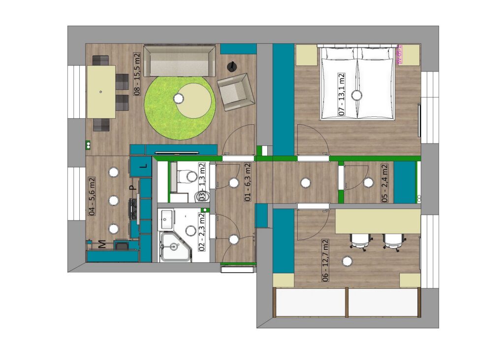 • změna dispozice ze 3+1 na 3kk,